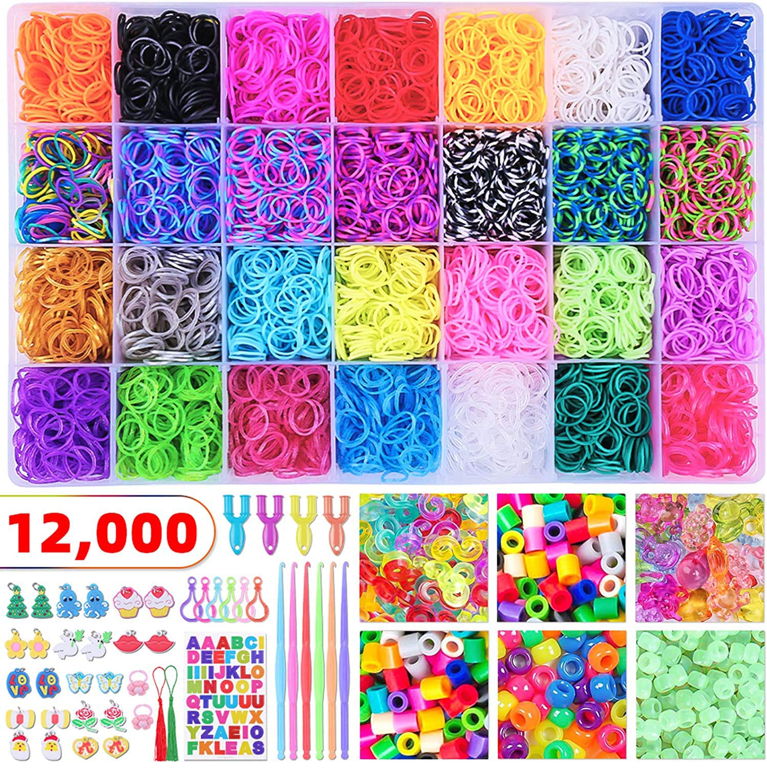 12000 Rubber Loom Bands Rainbow Rubber Bands 28 Assorted Colors Mega Refill Kit Colorful Bracelet Making Set For Kids Weaving Diy Crafting 600 S Clips 300 Beads 4 Y Looms 6 Hooks